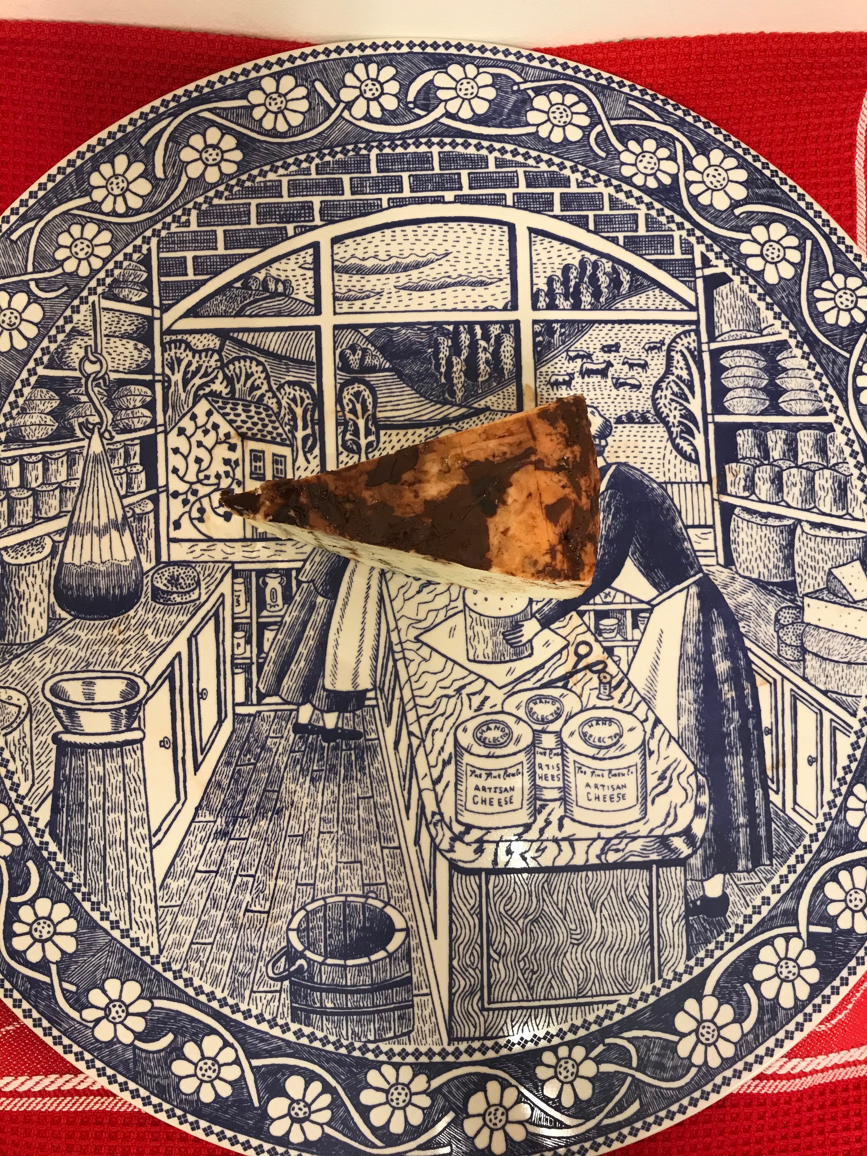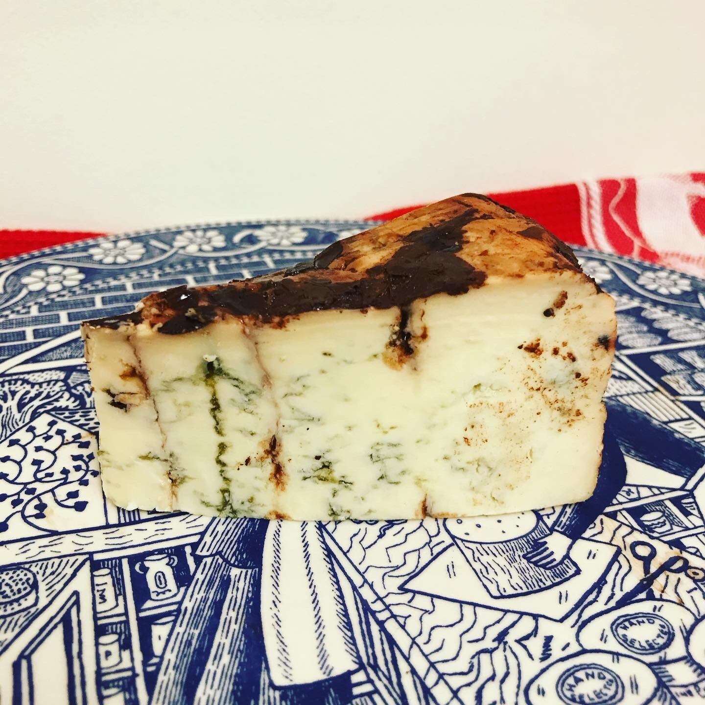 まるでデザートのようなブルーチーズ。ブルーチーズにアメリカ最高級のココアビーンズから作ったチョコレートリキュール「チョコ21」を注入して1か月漬け込んだ斬新なチーズ。表面にはココアパウダー、削ったスイートミルクチョコレートが散りばめられています。熟成期間は通算4か月です。