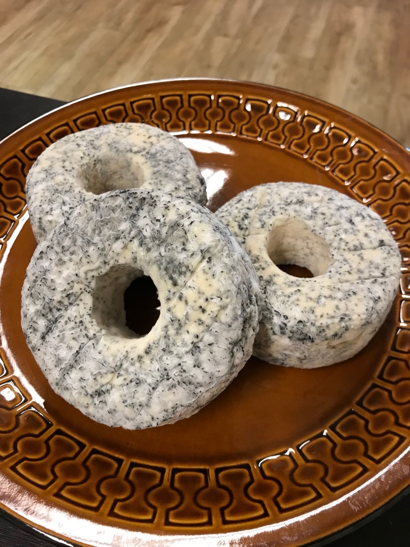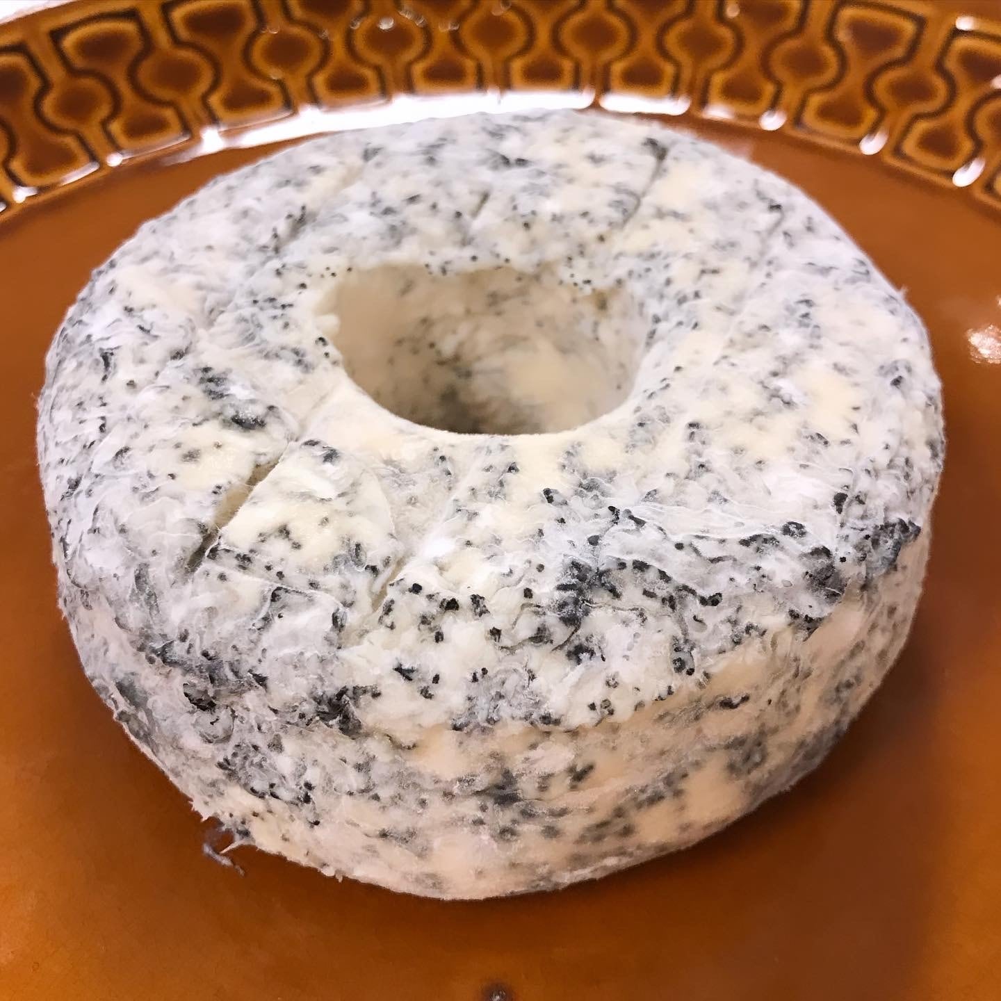 フランス中部の町・ロッシュ近郊で作られているドーナツ型のシェーヴル。周りの黒い色は灰(サンドレ)をまぶしてあり、風味は穏やか。組織はキメが細かく若いときは比較的マイルドです。熟すにつれて外皮はいろいろな色のカビをまとって中身は凝縮し、旨味やコクが増していきます。クーロンヌとは王冠の意味です。合わせるワインは、すっきりとした白ワインと。